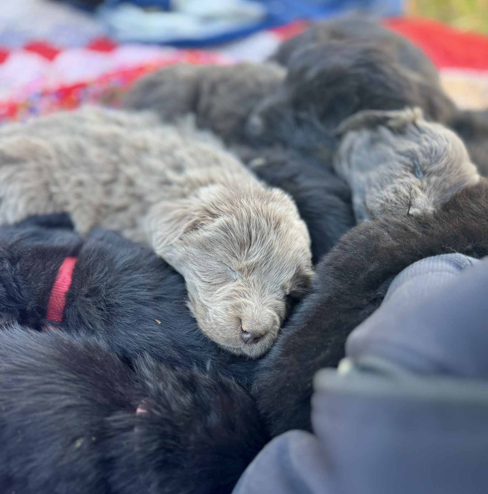 Around the 6-7 week mark after the puppies have had their first vet visit, I schedule my puppy-pick day. This day is an opportunity to visit and pick-out/claim your new puppy before you take them home at 8 weeks. I schedule each family in 30-45 min slots in order of the received down payments. If you want to visit the puppies before putting down a deposit, you are absolutely welcome to still visit! If you have other furry members of the family feel free to bring them too. If you live a significant distance away and can’t make the trip FaceTime or a video call is also an option as well as another day.